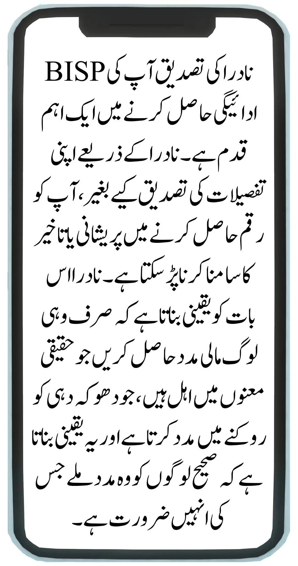 - Check Your Status: Keep an eye on your mobile phone for a notification from BISP. This message will let you know when your payment is ready.