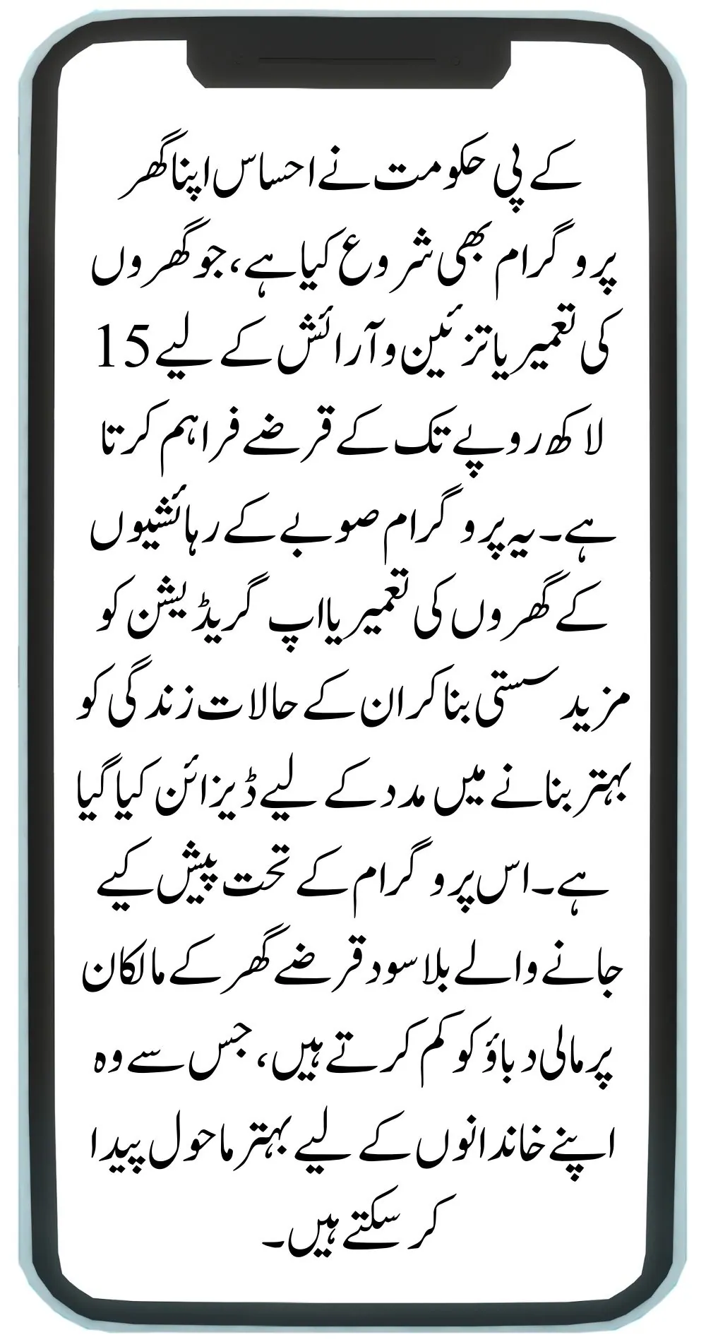 The KP government has also launched the Ehsaas Apna Ghar program, which provides loans of up to Rs1.5 million for the construction or renovation of homes. This program is designed to help improve the living conditions of residents in the province by making it more affordable to build or upgrade their homes. The interest-free loans offered under this program reduce the financial strain on homeowners, allowing them to create better living environments for their families.