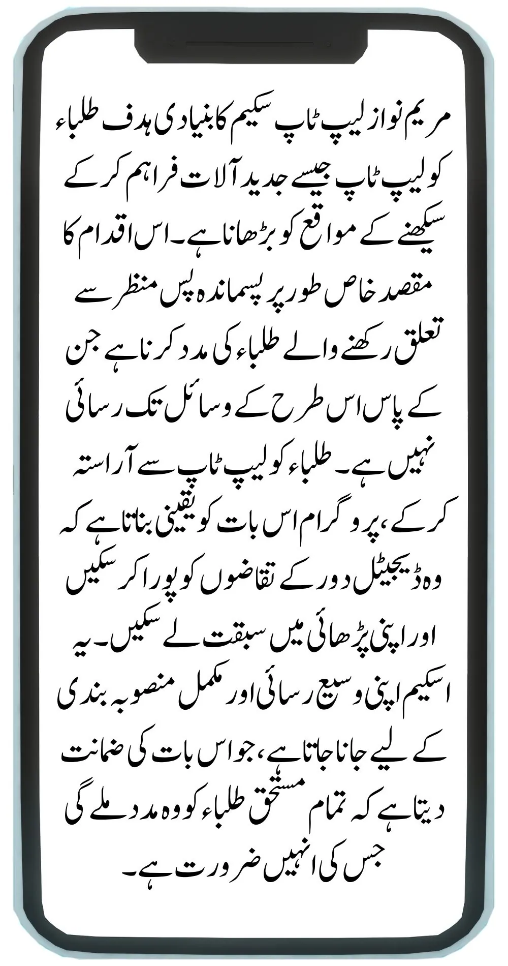 The Maryam Nawaz Laptop Scheme, along with a student scholarship program, has been officially approved by the Chief Minister. Instructions have been given to the relevant departments to begin the registration process for these initiatives. The laptop scheme will take several months to complete due to the logistics involved, such as selecting suppliers, planning, registering students, and finally distributing the laptops. This comprehensive approach ensures that the program is well-organized and reaches all deserving students.