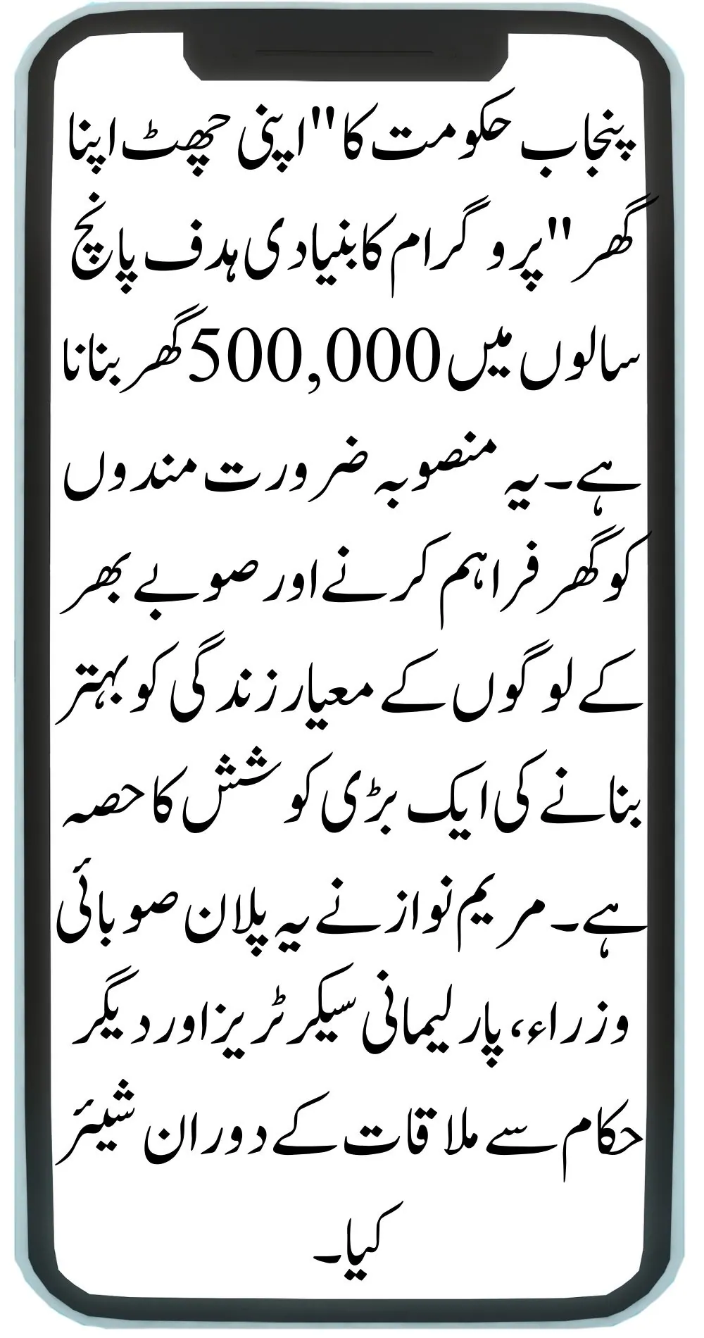 The Punjab government’s main goal with the “Apni Chhat Apna Ghar” program is to build 500,000 houses in five years. This project is part of a larger effort to provide housing to those in need and improve the quality of life for people across the province. Maryam Nawaz shared this plan during a meeting with provincial ministers, parliamentary secretaries, and other officials.