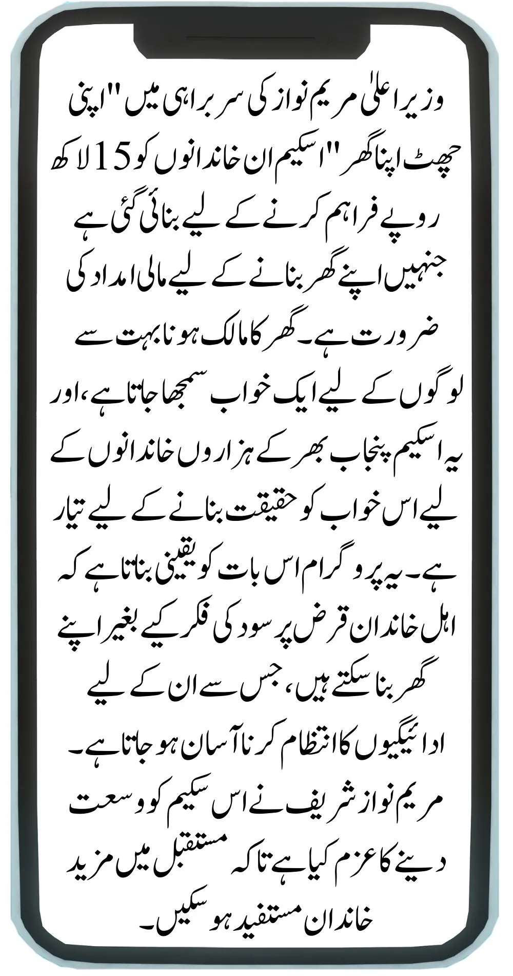 The “Apni Chhat Apna Ghar” scheme, spearheaded by Chief Minister Maryam Nawaz, is designed to provide 15 lakh rupees to families who need financial assistance to build their own homes. Owning a house is considered a dream for many, and this scheme is set to make that dream a reality for thousands of families across Punjab. The program ensures that eligible families can build their homes without worrying about interest on the loan, making it easier for them to manage repayments. Maryam Nawaz Sharif has committed to expanding the scheme so that more families can benefit in the future.