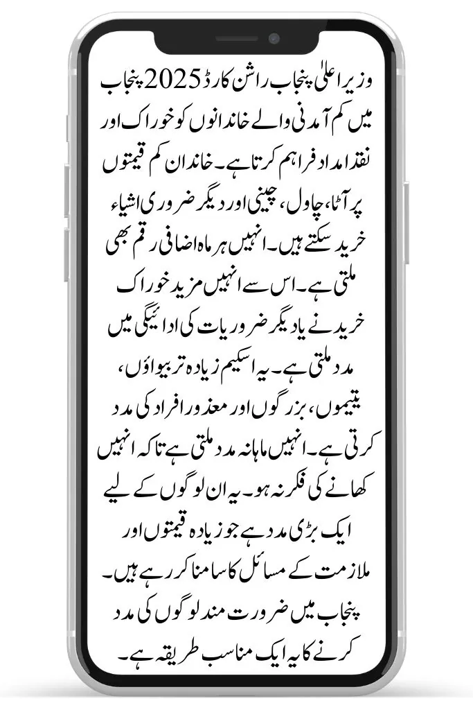 The CM Punjab Rashan Card 2025 gives food and cash help to low-income families in Punjab. Families can buy flour, rice, sugar, and other important items at lower prices. They also get extra money each month. This helps them buy more food or pay for other needs. The scheme mostly helps widows, orphans, elderly people, and persons with disabilities. They receive monthly support so they don’t have to worry about food. This is a big help for people facing high prices and job problems. It is a fair way to support the needy people in Punjab.