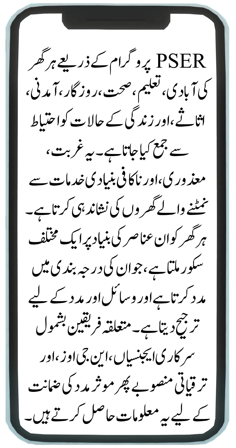 By focusing on particular households, the PSER program guarantees that help reaches the most deserving ones. It guarantees effective finance and resource distribution, therefore ensuring that they go where most required. The initiative offers a strong database that facilitates wise decision-making. This enhances the social service and program delivery. Trained survey teams then go door-to-door to gather information to carry out this. Real-time data collecting and distribution is accomplished using a smartphone app. There is centralized data center management and analysis of all the gathered data.