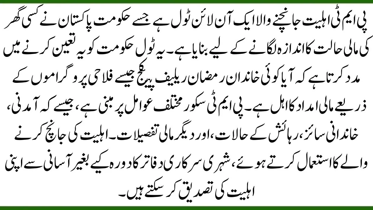| Purpose of PMT Eligibility Checker | Used to determine eligibility for government welfare programs, including the Ramzan Relief Package. |