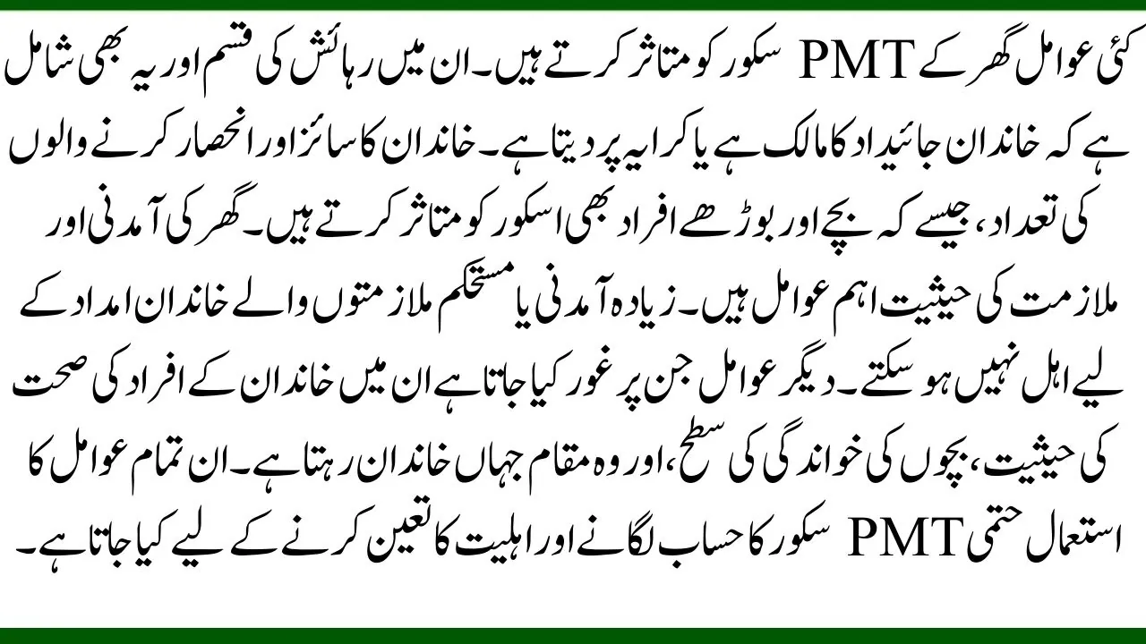 | Key Factors Affecting the PMT Score | Key factors impacting eligibility. |
