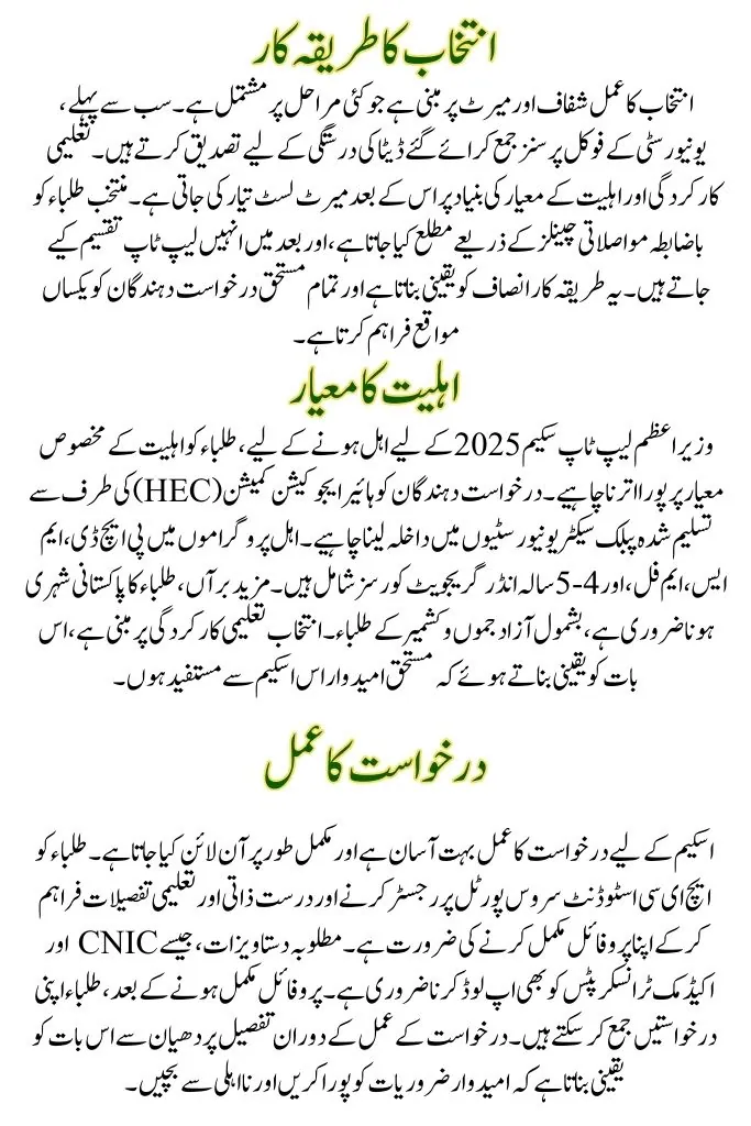 The application process for the scheme is very simple and conducted entirely online. Students need to register on the HEC Student Service Portal and complete their profile by providing accurate personal and academic details. Required documents, such as CNIC and academic transcripts, must also be uploaded. Once the profile is complete, students can submit their applications. Careful attention to detail during the application process ensures that candidates meet the requirements and avoid disqualification.