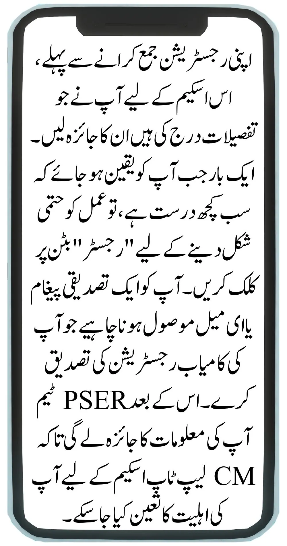 Before submitting your registration, review all the details you’ve entered for this scheme. Once you’re sure everything is correct, click the “Register” button to finalize the process. You should receive a confirmation message or email verifying your successful registration. Your information will then be reviewed by the PSER team to determine your eligibility for the CM Laptop Scheme.
