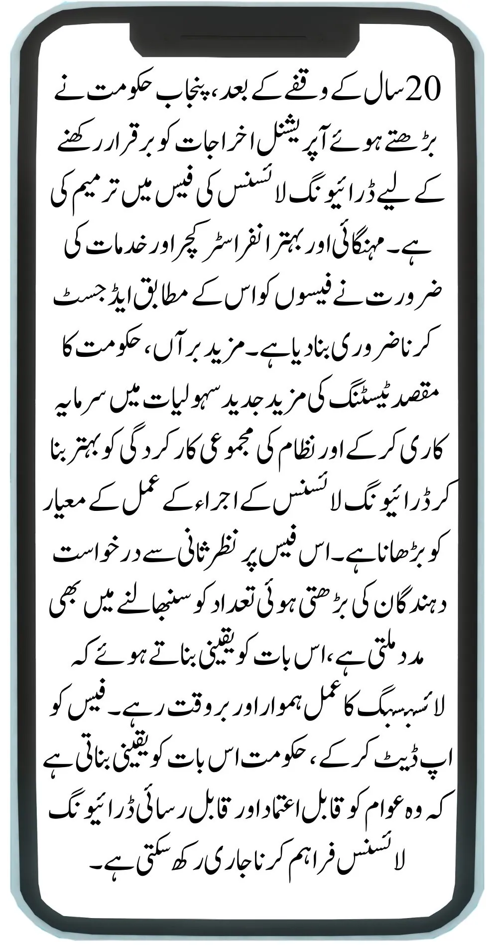 After a gap of 20 years, the Punjab government has revised the driving license fees to keep up with the increasing operational costs. Inflation and the need for better infrastructure and services have made it essential to adjust the fees accordingly. Additionally, the government aims to enhance the quality of the driving license issuance process by investing in more advanced testing facilities and improving the overall efficiency of the system. This fee revision also helps in managing the growing number of applicants, ensuring that the licensing process remains smooth and timely. By updating the fees, the government ensures that it can continue to provide reliable and accessible driving licenses to the public.