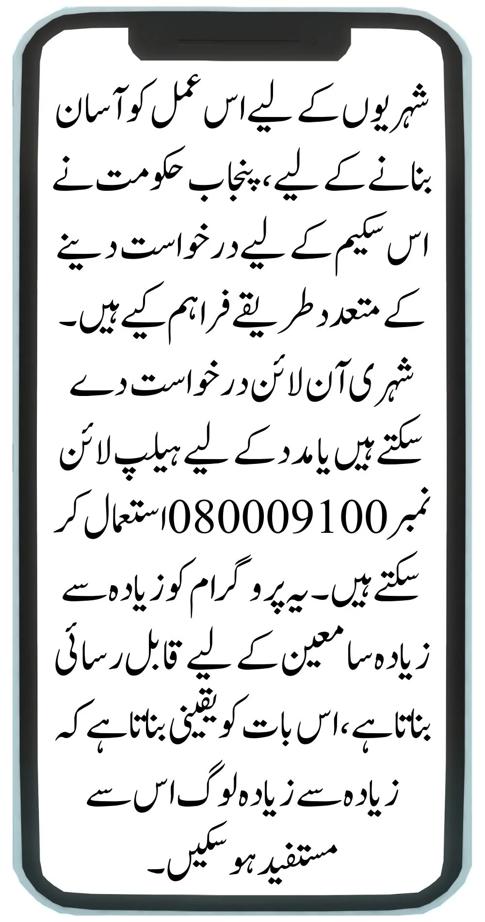 To make the process easy for the citizens, the Punjab government has provided multiple ways to apply for this scheme. Citizens can apply online or use the helpline number 080009100 for assistance. This makes the program accessible to a larger audience, ensuring that more people can benefit from it.