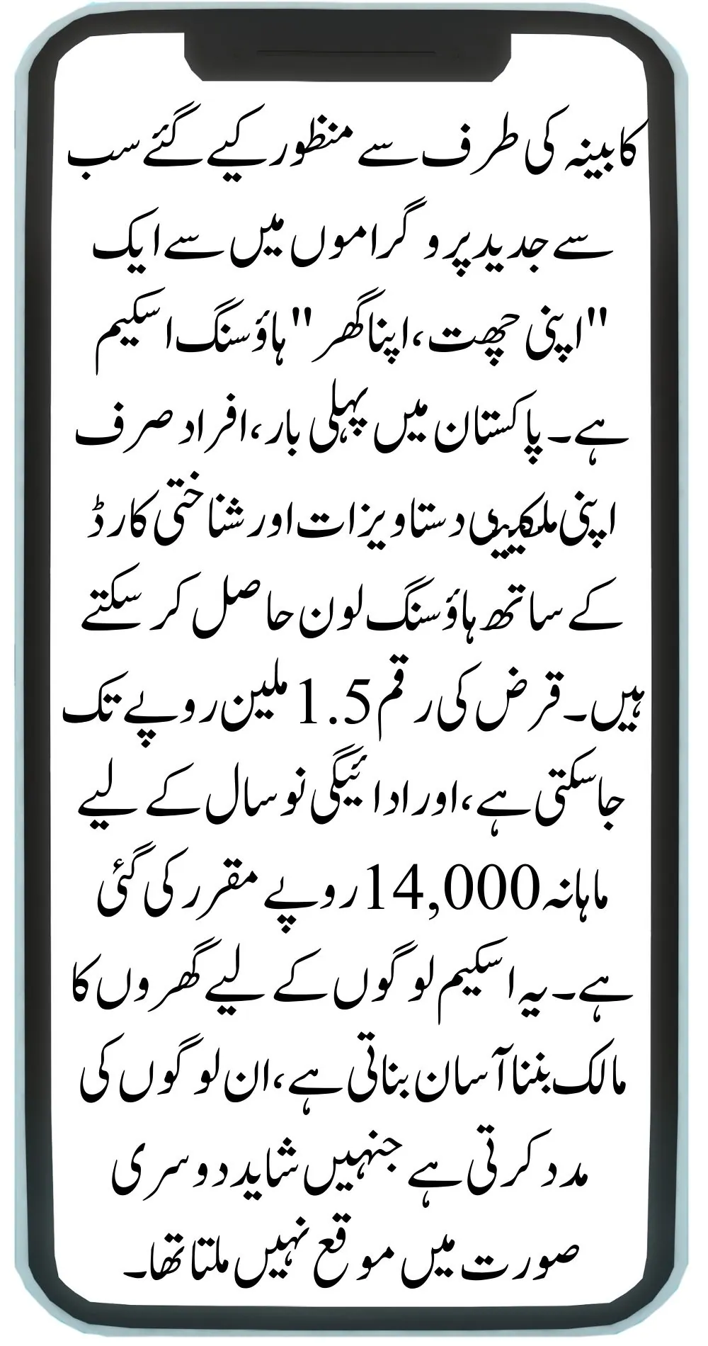 One of the most innovative programs approved by the cabinet is the “Apni Chhat, Apna Ghar” housing scheme. For the first time in Pakistan, individuals can get housing loans with just their ownership documents and identity card. The loan amount can go up to 1.5 million rupees, and the repayments are set at 14,000 rupees per month for nine years. This scheme makes it easier for people to own homes, helping those who might not have had the opportunity otherwise.