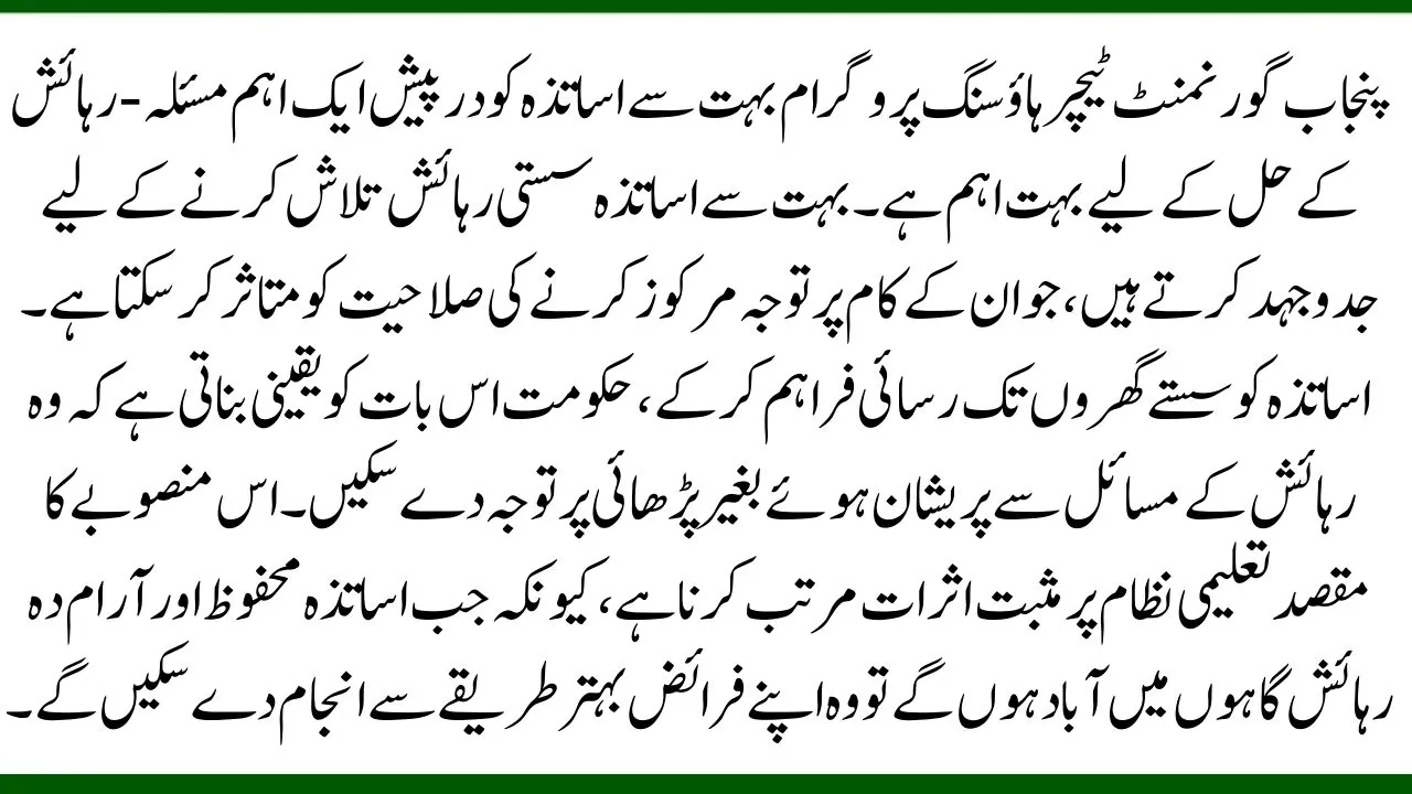 The Punjab Govt Teacher Housing Program is crucial for addressing a significant problem faced by many teachers – housing. Many teachers struggle to find affordable housing, which can affect their ability to concentrate on their work. By providing teachers with access to affordable homes, the government ensures that they can focus on teaching without the distraction of housing concerns. The project aims to create a positive impact on the education system, as teachers will be able to perform their duties better when they are settled in secure and comfortable living spaces.