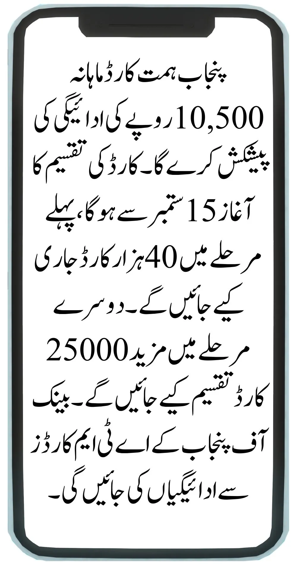 The Punjab Himmat Card provides a monthly payment of Rs 10,500 to eligible individuals.