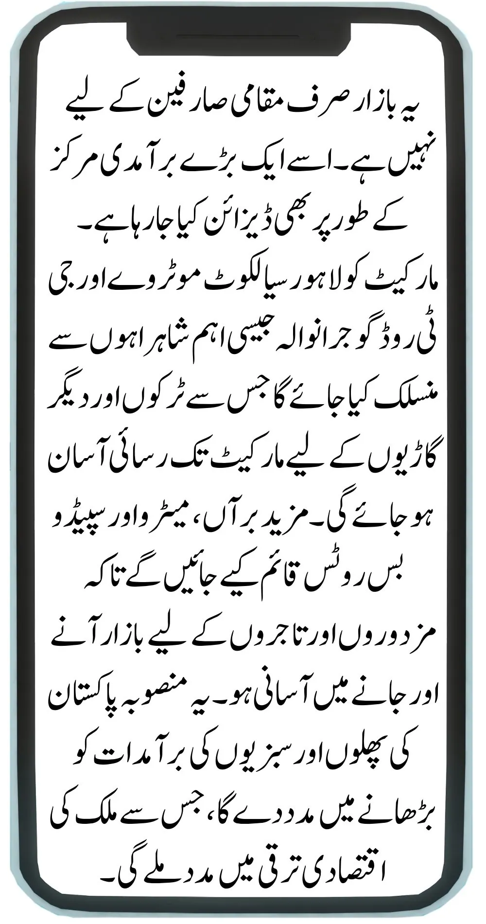 This market is not just for local consumers; it is also being designed as a major export hub. The market will be connected to important highways like the Lahore-Sialkot Motorway and GT Road Gujranwala, making it easy for trucks and other vehicles to access the market. Additionally, metro and Speedo bus routes will be established to make it easier for workers and merchants to travel to and from the market. This project will help boost Pakistan’s exports of fruits and vegetables, contributing to the country’s economic growth.