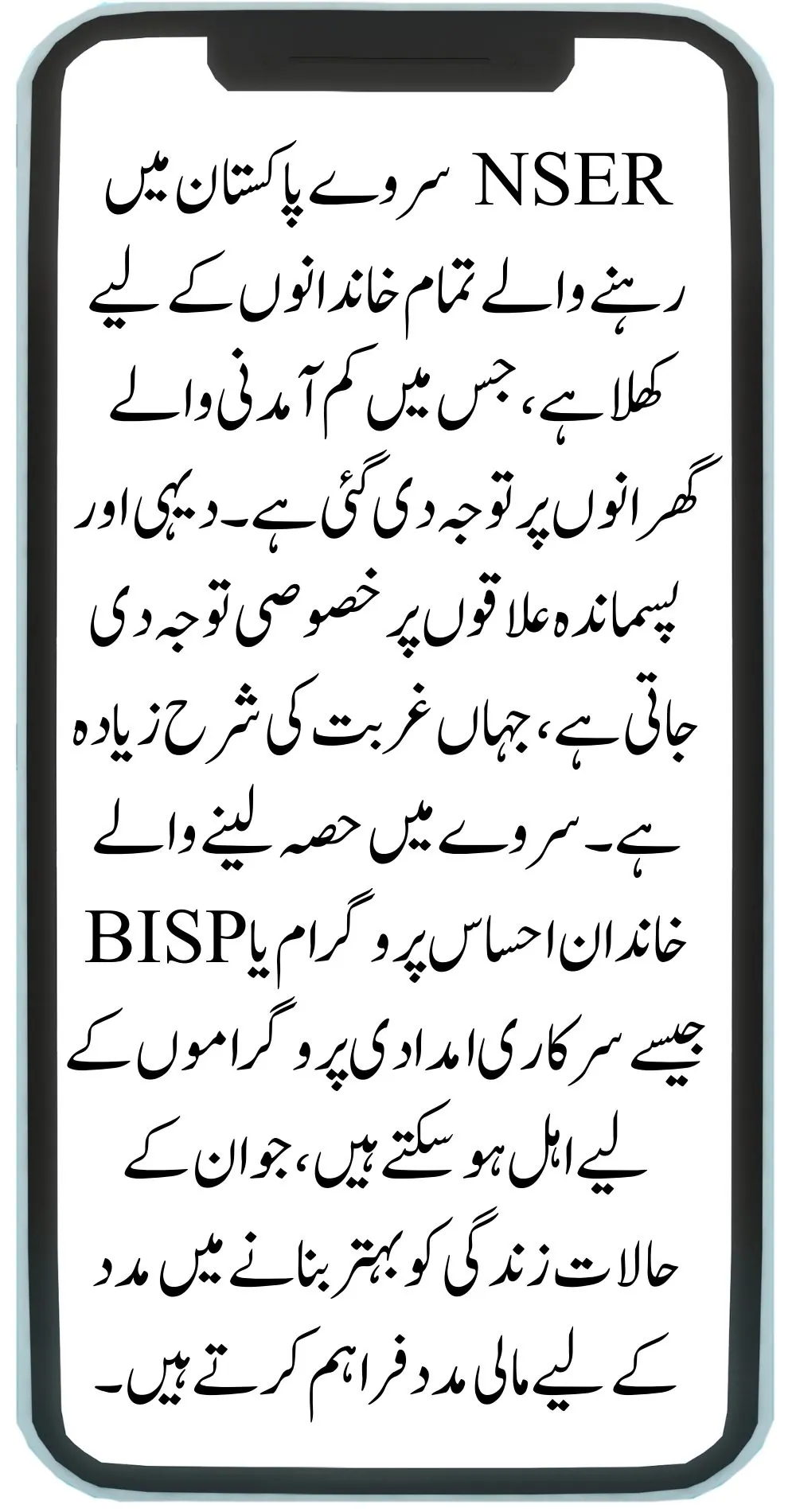 The NSER survey is open to all families living in Pakistan, with a focus on low-income households. Special attention is given to rural and underdeveloped areas, where poverty rates are higher. Families who participate in the survey may qualify for government aid programs like the Ehsaas Program or BISP, which offer financial support to help improve their living conditions.