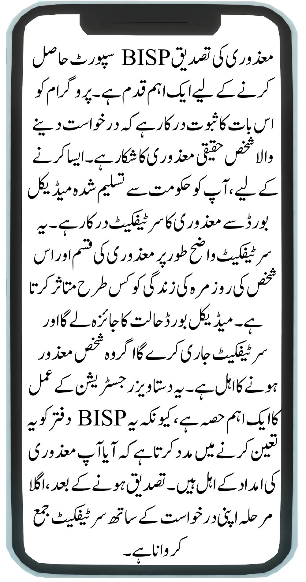 Verifying the disability is an important step in getting BISP support. The program requires proof that the person applying has a real disability. To do this, you need a disability certificate from a government-recognized medical board. This certificate should clearly state the type of disability and how it affects the person’s daily life. The medical board will assess the condition and issue the certificate if the person qualifies as disabled. This document is a key part of the registration process, as it helps the BISP office determine if you are eligible for disability assistance. Once verified, the next step is to submit the certificate with your application.