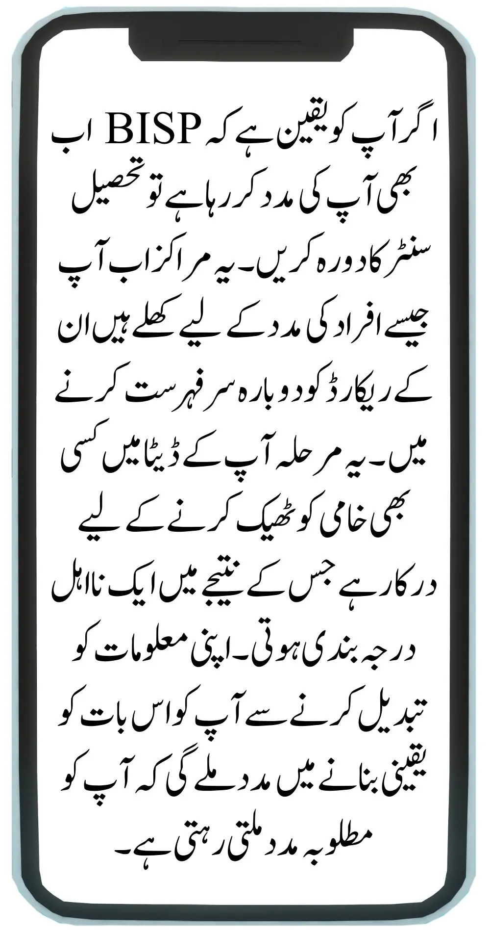 Visit a Tehsil Center if you believe BISP should still be helping you. These centers are now open to assist individuals just like you in resurfacing their records. This phase is required to fix any errors in your data that would have resulted in an ineligible classification. Changing your information will help you to ensure that you keep getting the support required.