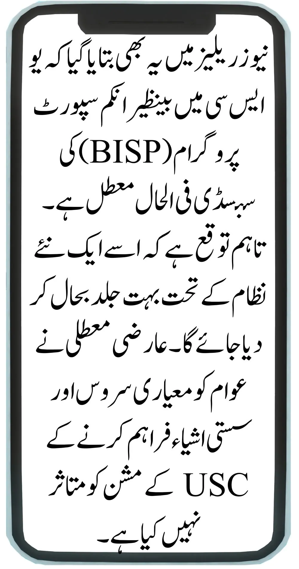 Yes, the BISP subsidy at USC is currently suspended but will be restored soon under a new mechanism.