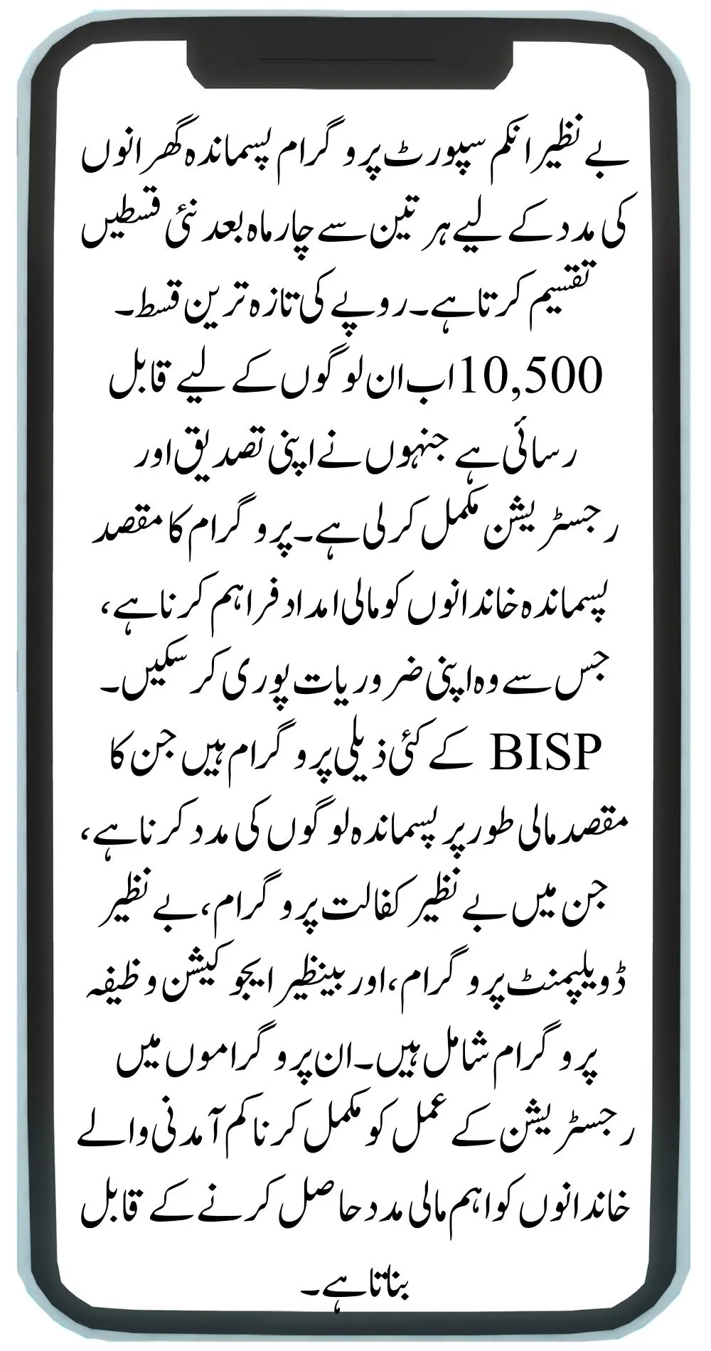 The Benazir Income Support Program (BISP) has announced a new installment of Rs. 10,500. This organization seeks to provide financial support to impoverished households throughout Pakistan. Details on how to register, eligibility criteria, and how to receive this new payment are provided below.