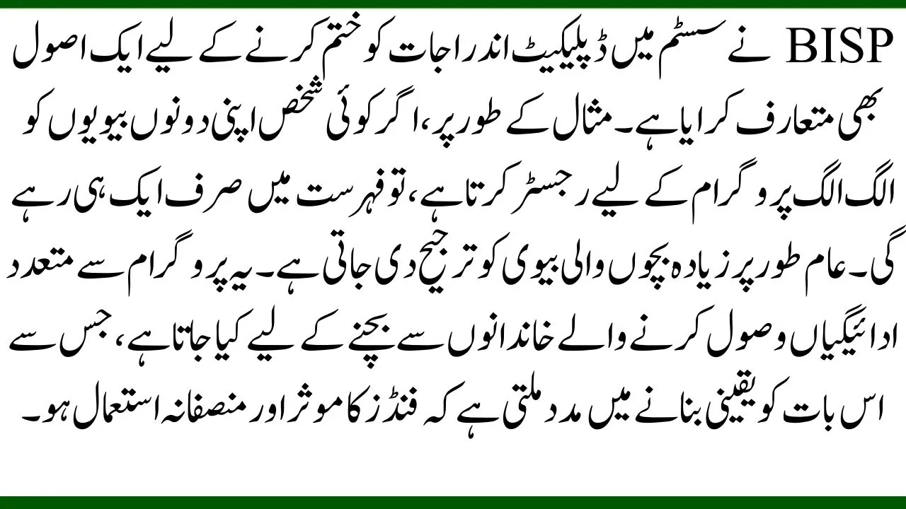 BISP has also introduced a rule to remove duplicate entries in the system. For example, if a man registers both his wives separately for the program, only one will remain on the list. Typically, the wife with more children is prioritized. This is done to avoid families receiving multiple payments from the program, which helps ensure that funds are used efficiently and fairly.